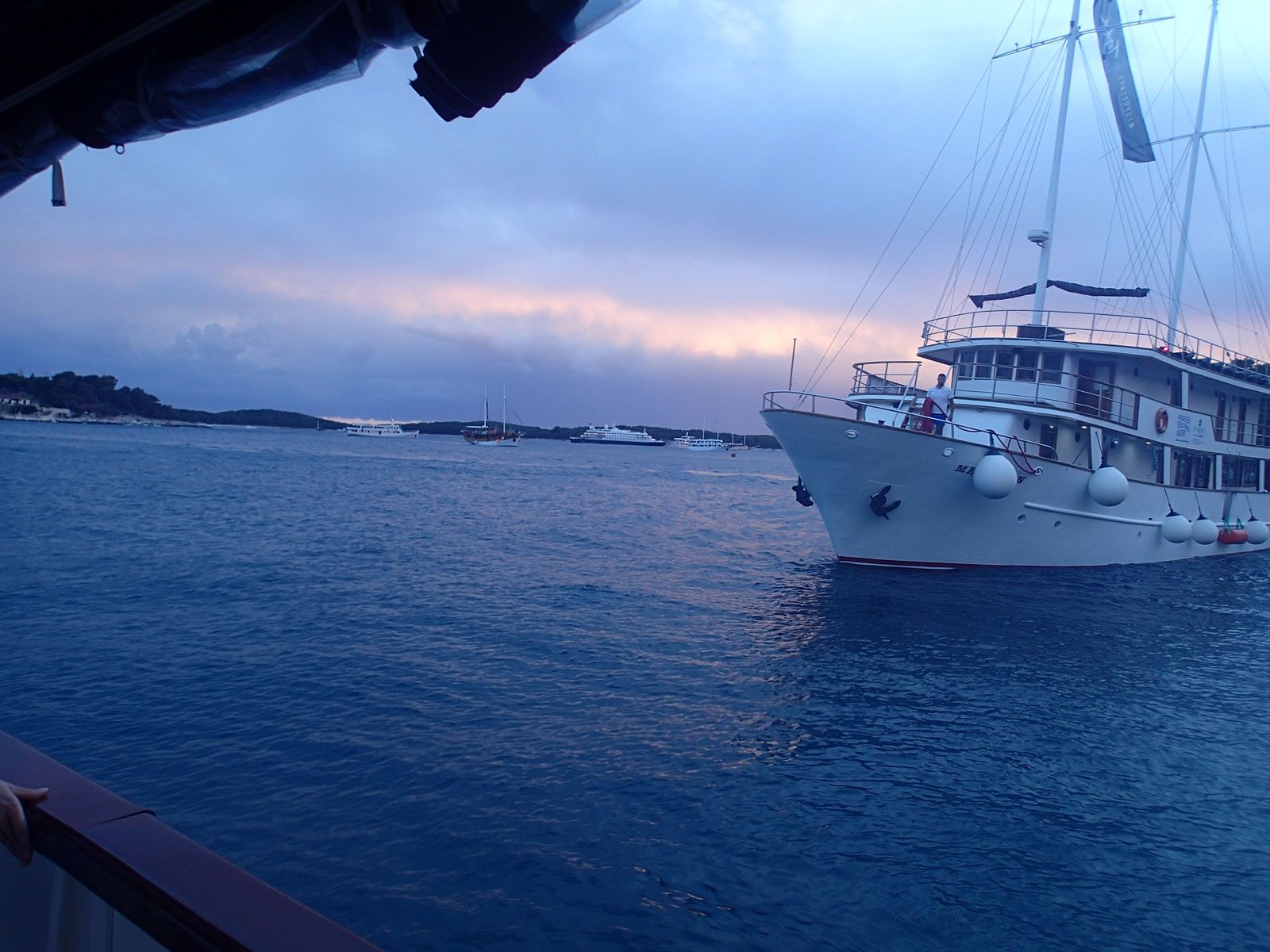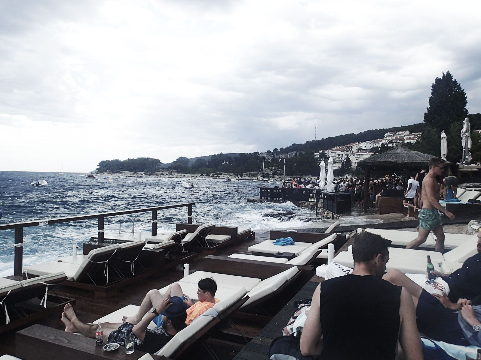 Getting on the boat was.. an adventure. We felt bad for the crew, the boat was rocking at ridiculous angles, and it had apparently been worse through out the day. I could not take the rocking so we jumped on – quickly changed – then headed back to the main land to find a new warm dry place to hang out. The bar strip in Hvar is a lot smaller then I thought it would be – for having the reputation of the party island. We ended up going to the bar next to our coffee bar, and drank out the thunderstorm plaguing our boat.