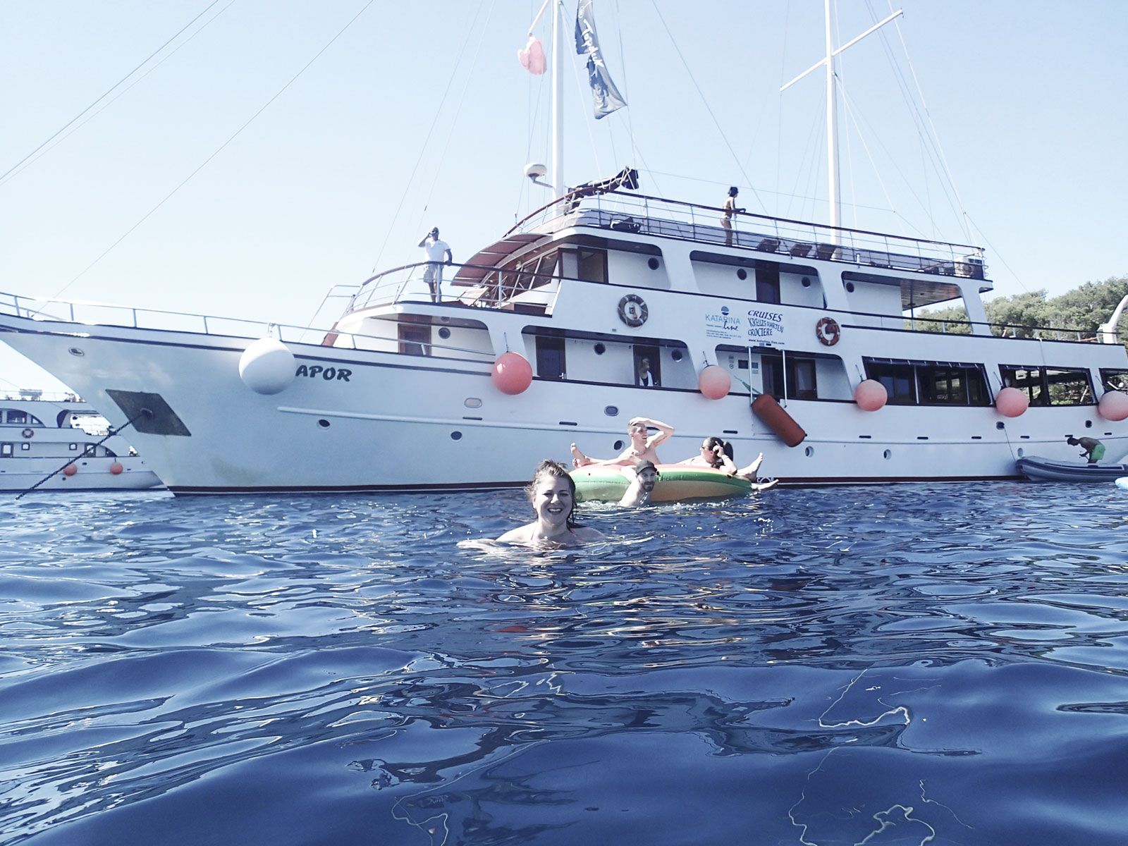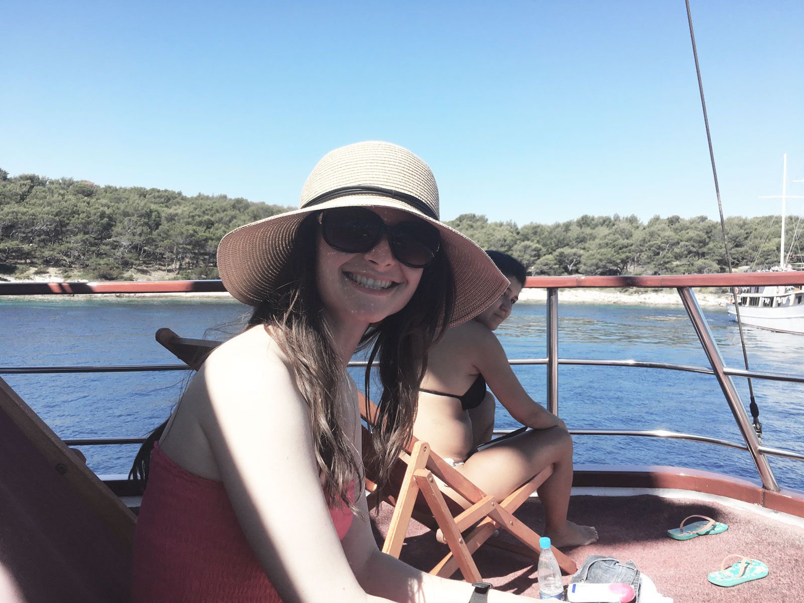 Afterwards I headed to the front of the boat to claim a deck chair and see where we were heading. We had about a three hour sail before we hit a small cove on an island across from hvar. We mainly just relaxed and enjoyed the view. The waves were a little big but the blue skies and bright sun made up for it.