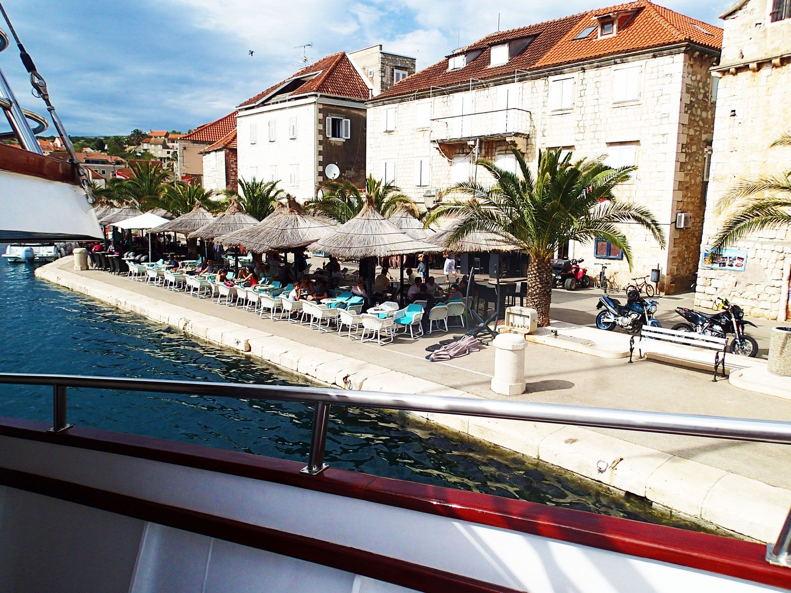 This morning we dragged ourselves out of bed to check out the ships complementary breakfast. We were still at port when we arrived at breakfast. Breakfast on the boat was from 8-9 am. A lot of our ship mates were still sleeping from the night before. But we were able to see the small port of Milna waking up as our boat pulled out of the harbour towards the next stop.
