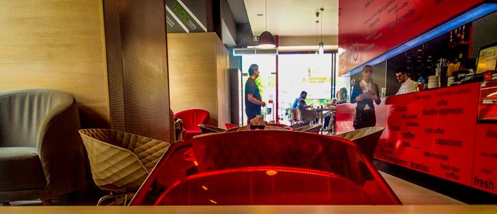 Honestly it was so wet and miserable that we wimped out and found a coffee shop to sit in. This coffee shop was amazing, very much like the chain Aroma that we have in Canada. It was warm and dry and modern, and the coffee was amazing. Coffee is one thing that I get excited about on vacation, since so many hotels and restaurants have bad coffee. Finding a good cup is amazing! We also got croissants to go with the coffee, if you were wondering.