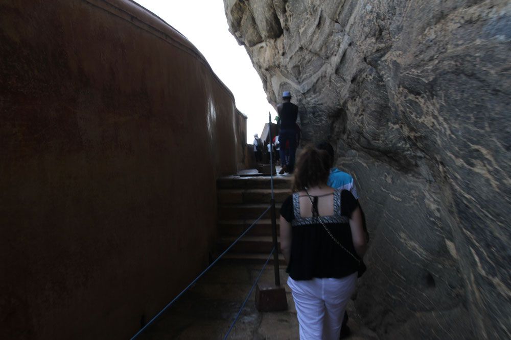We met our guide on the other side of the gardens and started our climb. The country actually had a day off school to celebrate a festival. So many of the families had brought their children to Sigiriya for the day. This made the lines very long. Our guide had a way around this – although I am not sure how I feel that we deliberately broke the rules. We went up the exit staircase half way up the hill then joined the line of people going up to the top.