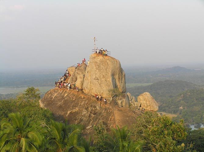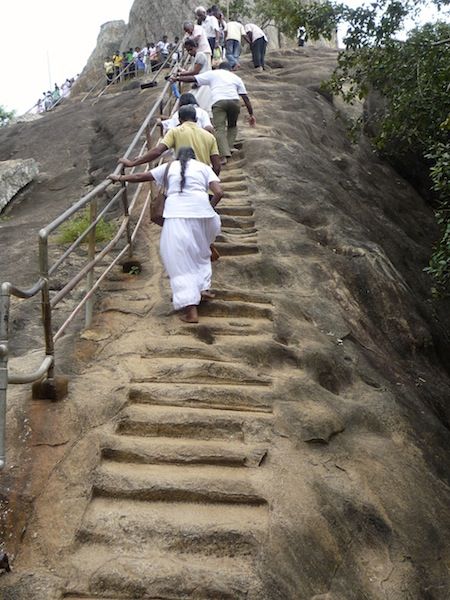 On the way back to our hotel – our guide asked if we wanted to see one more temple. This was at Mihintale, the birthplace of Sri Lankan Buddhism built 3rd century BC. We climbed a lot (maybe 1,840) stone steps up to really-old pagodas, monasteries and caves. It was really windy at that top. Once we reached the top, our guide led us to the “rock” on top to the mountain.