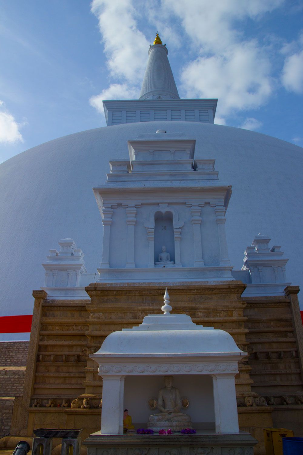 Our guide took us to one of the oldest still working temples in the country, Jethawanaramay. It was built of red bricks instead of the customary white temples that Sri Lanka is known for. We took our shoes off and circled around the stupa. It was really cool. We learned quickly that everyone wears white to visit the stupas – so we stood out a little bit. But the thing that stool out the most was there were not any other tourists here- the rest of the people at this stupa were practicing Buddhists.